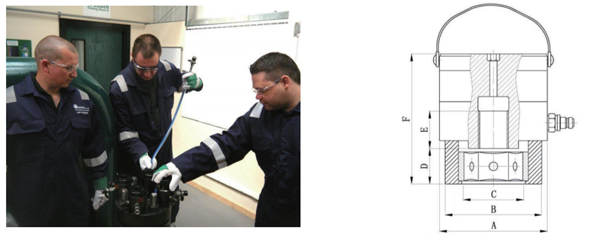 • 彈簧自動復(fù)位,活塞過行程保護(hù),當(dāng)活塞達(dá)到最大行程時,將可見一根紅色警示線,拉伸器內(nèi)部的一個簡單的機(jī)械失效裝置將避免液壓油濺傷作業(yè)人員;