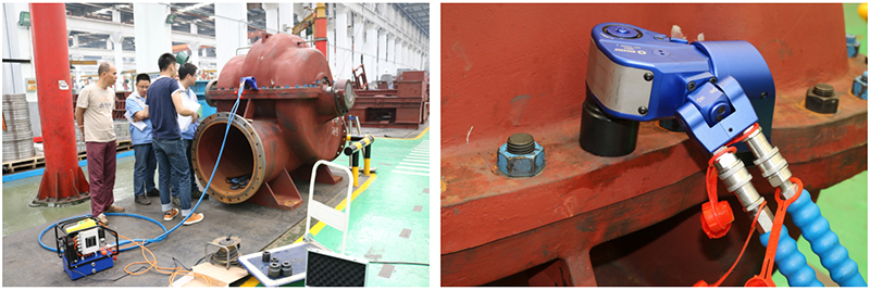 在石化項目的檢修安裝現(xiàn)場,我們發(fā)現(xiàn)有這樣一個現(xiàn)象:同樣的扭矩和工況環(huán)境下,用電動扳手安裝的閥門法蘭扭矩鎖緊不到位,返工的幾率很高。而用液壓扳手安裝的則一次通過率很高。因此,雖然很多現(xiàn)場為了追求速度,會大量使用電動液壓扳手來處理常溫常壓的小閥門法蘭,但重要的法蘭還是更信任液壓扳手。